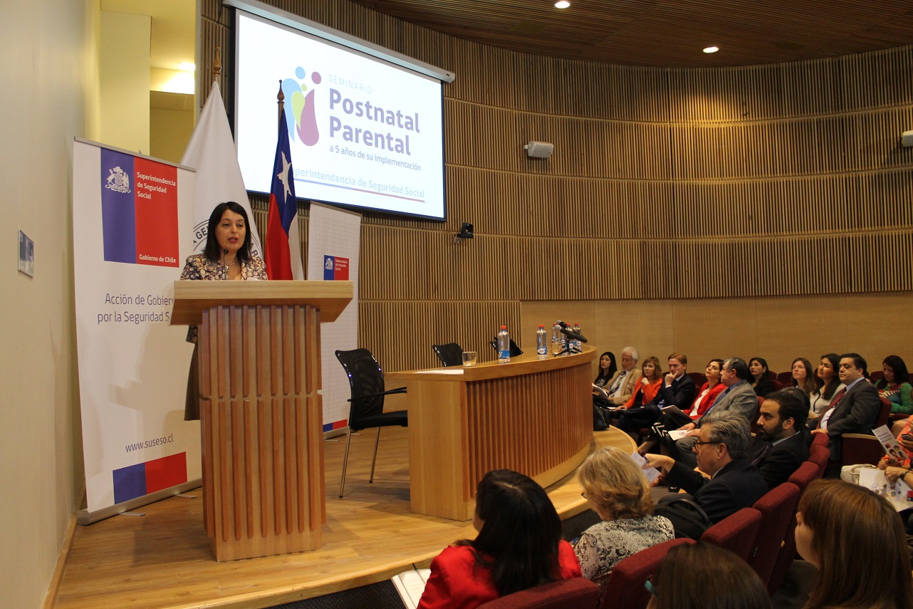 Con la participación de la Ministra de la Mujer y Equidad de Género, Claudia Pascual y la Subsecretaria de Previsión Social, Jeannette Jara, junto al Superintendente de Seguridad Social, Claudio Reyes y a la Intendenta de Beneficios Sociales, Romy Schmidt, se realizó el seminario "Postnatal Parental, a cinco años de su implementación",
