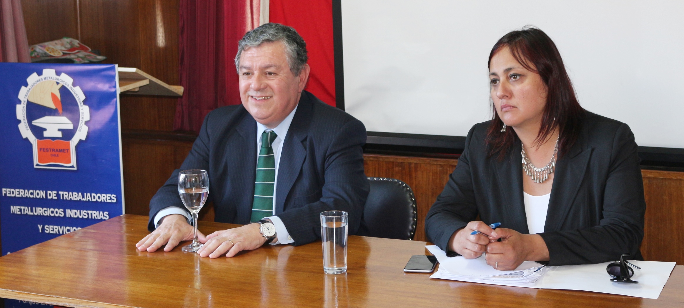 Por la mañana, ambas autoridades asistieron en el marco de la Mesa Industrial Forestal, a la sede de la entidad sindical que agrupa a trabajadores de Arauco, Masisa y empresas asociadas a la CMPC, con quienes sostuvieron un dialogo en torno a la Ley 16.774, sobre accidentes laborales y los alcances de la nueva Política de Nacional Seguridad y Salud en el Trabajo.