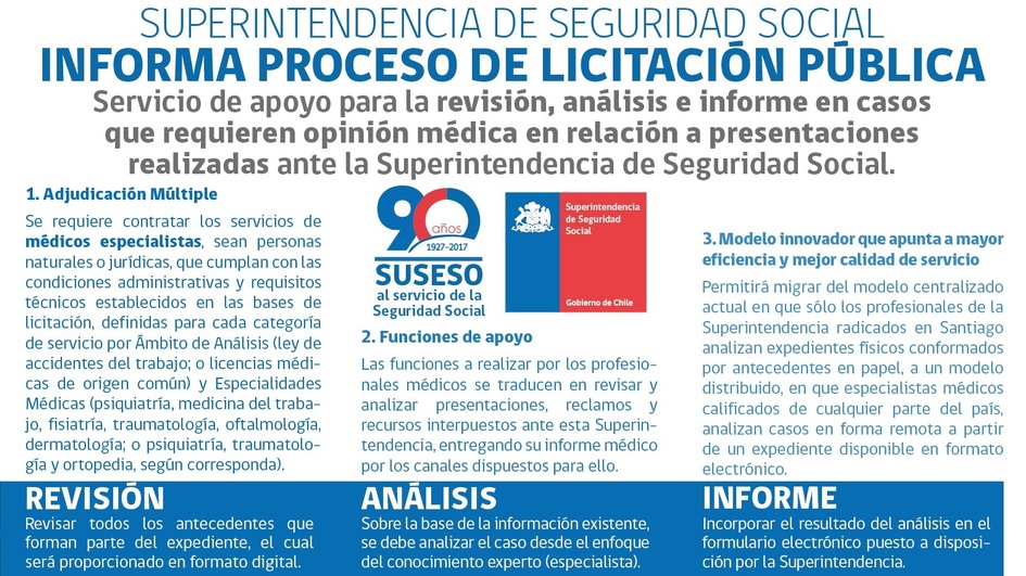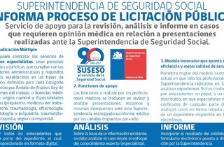 La Superintendencia de Seguridad Social, inició un inédito proceso de licitación para la contratación de servicios médicos externos de apoyo para la revisión, análisis e informe en casos que requieren opinión médica en las presentaciones realizadas por la ciudadanía ante la institución.