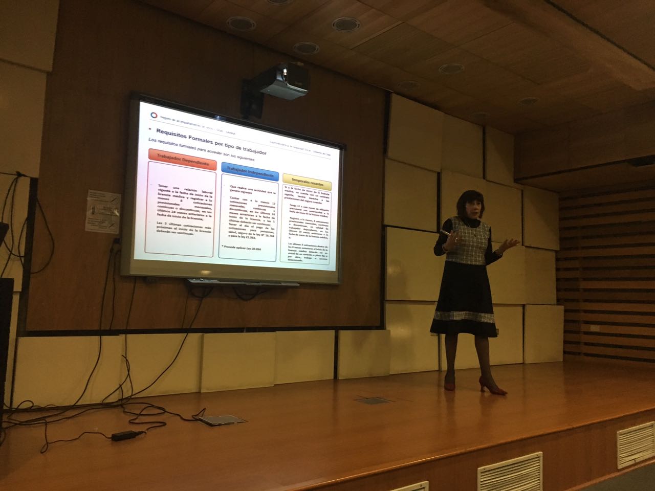 La capacitación fue dictada por la jefa del departamento de Licencias Médicas de la SUSESO, Carmen Naranjo y, contó además con la participación del Intendente de Beneficios Sociales (S), Cristian Llanos, el jefe departamento de Regímenes Previsionales y Asistenciales, Gabriel González, la abogadas, Carla Montano y Bárbara Hume.