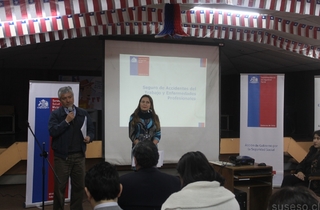 Las exposiciones estuvieron a cargo de los profesionales de la Superintendencia de Seguridad Social, Lily Alcaino, abogada y encargada de Jurisprudencia Administrativa y Normativa de la institución y de Cesar Ravinet, abogado del Departamento de Regulación de la Intendencia de Seguridad y Salud en el Trabajo.
