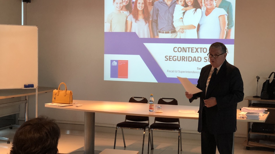 En el Instituto de Estudios Judiciales ubicado en Amunátegui 73, el Superintendente de Seguridad Social, Claudio Reyes Barrientos, inauguró el curso "Seguridad Social" en el marco del programa de perfeccionamiento de la Academia Judicial de Chile.