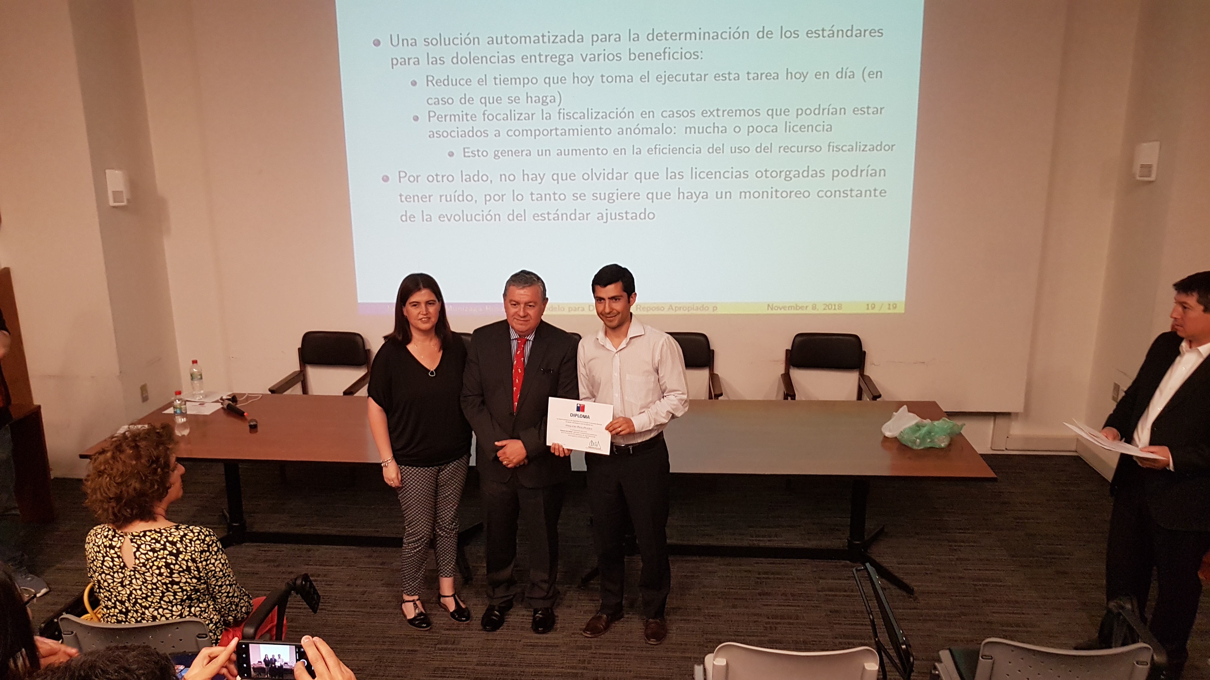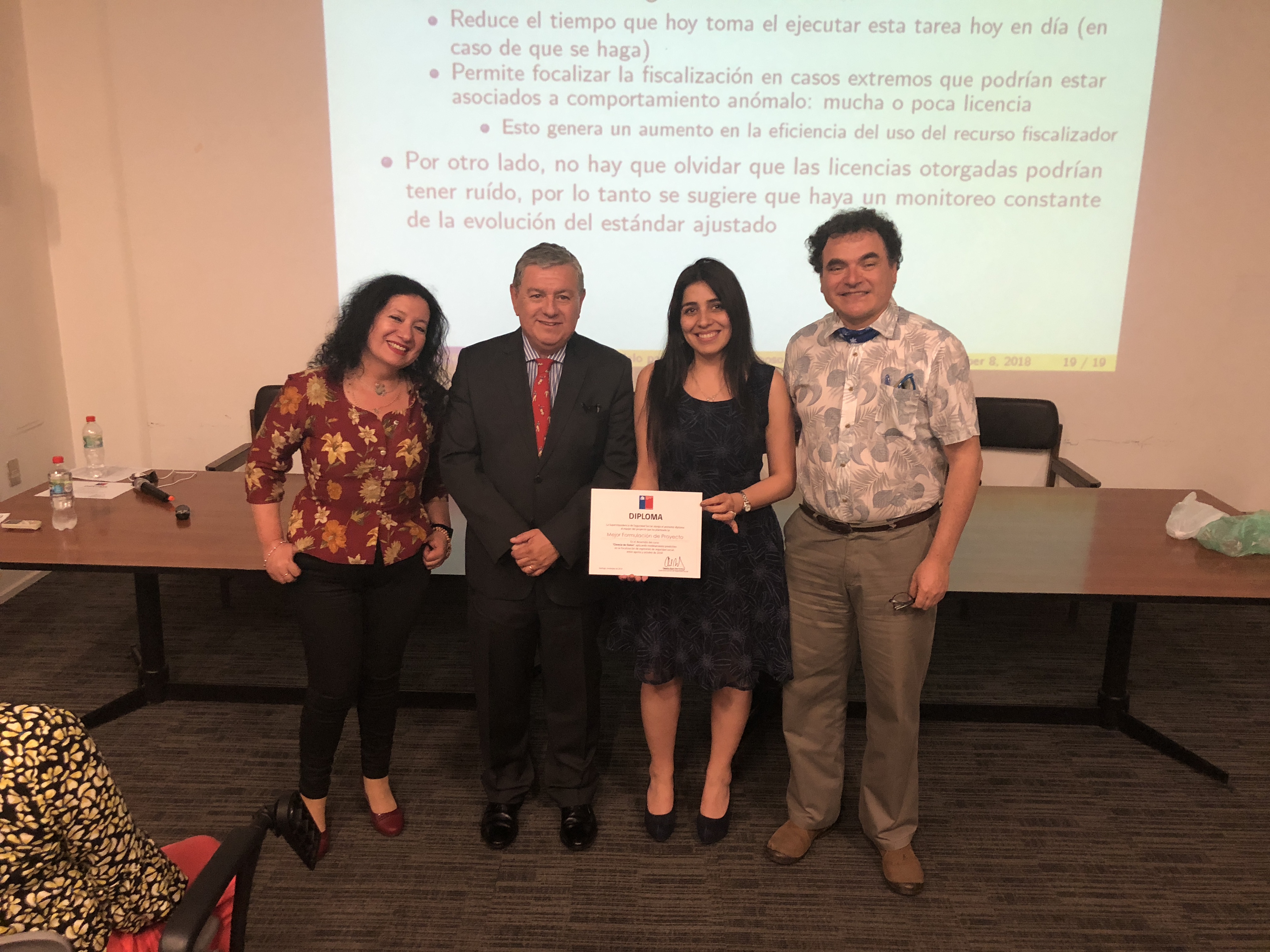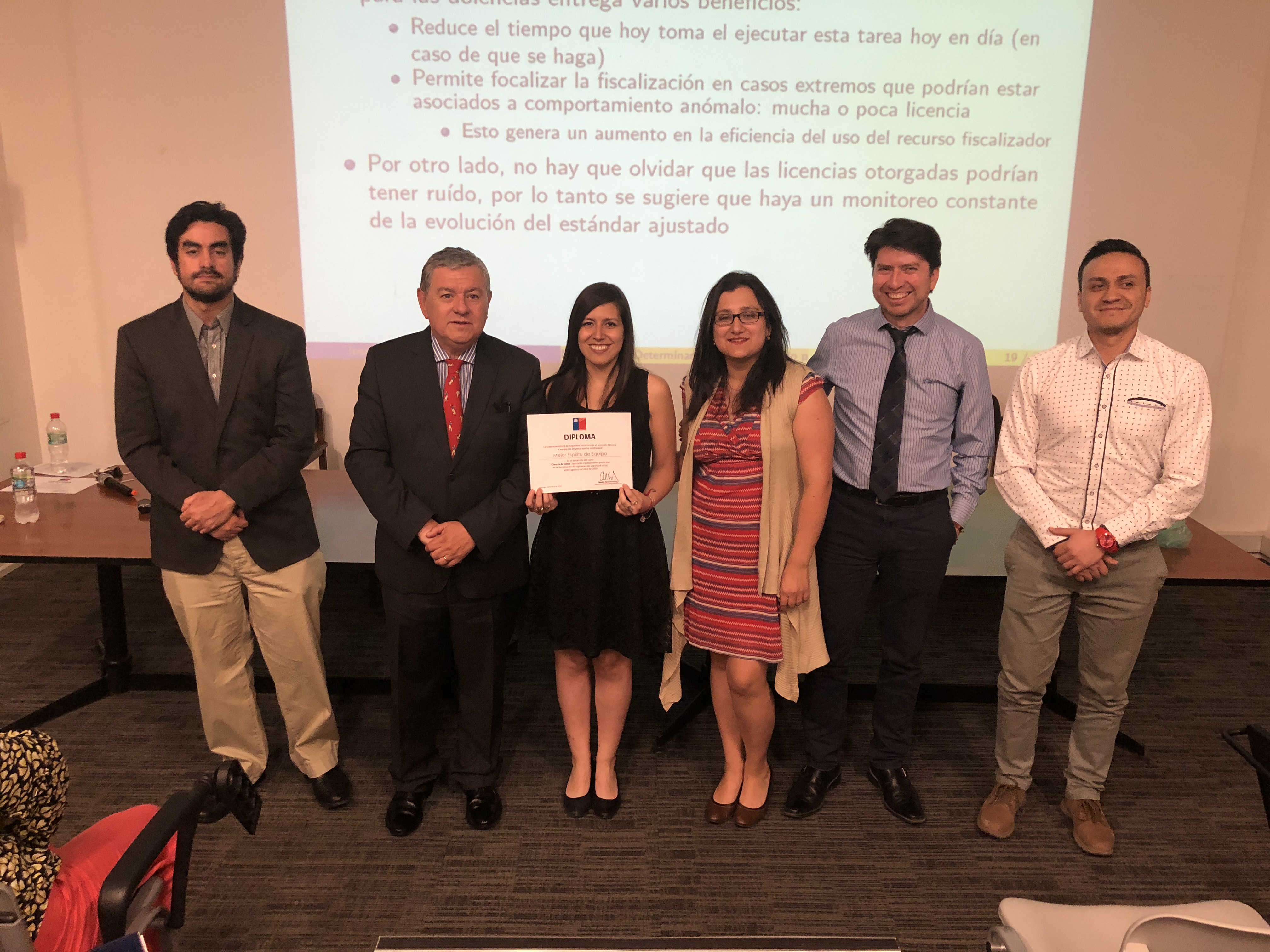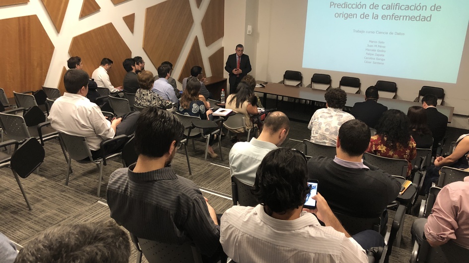- Categoría Mejores Resultados: Modelamiento predictivo de la calificación de origen de enfermedades laborales, desarrollado por Carolina Ganga, Cesar Santana, Felipe Zapata, Juan Pérez, Marcela Godoy y Marco Soto.