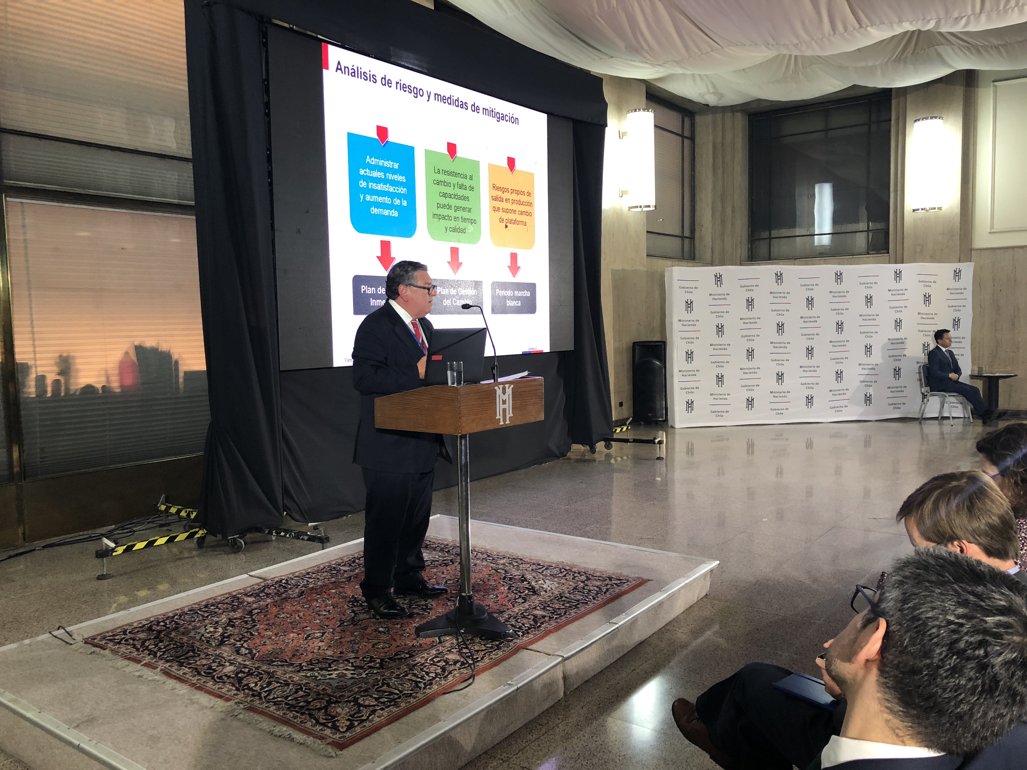 El Ministro de Hacienda, Felipe Larraín, participó en la Conferencia "Transformación Digital del Estado: Modernización de la Superintendencia de Seguridad Social" realizada hoy en el hall de Teatinos 120, en la cual se dio a conocer una importante e innovadora medida implementada en la Superintendencia de Seguridad Social (Suseso) para reducir significativamente los tiempos de respuesta a la ciudadanía.