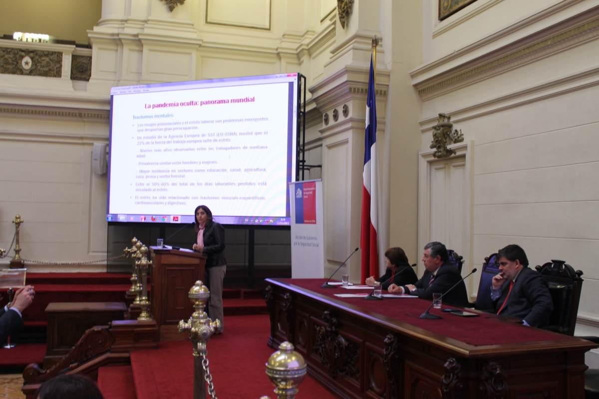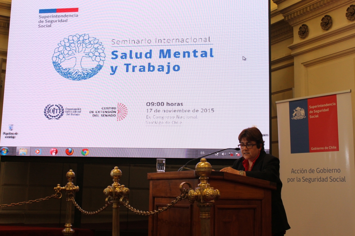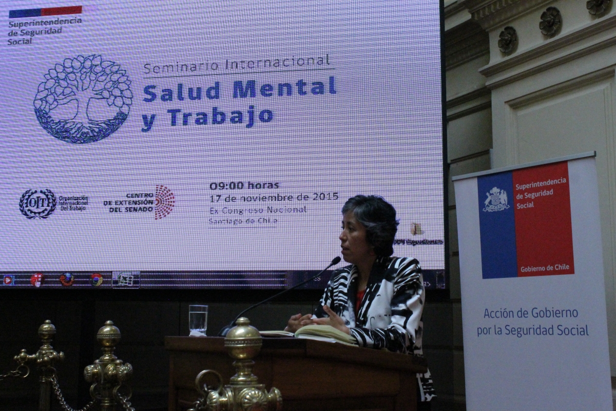 En el panel "Impacto de la Salud Mental en Chile", participaron David González, jefe de la Unidad Medicina del Trabajo y de Cristina Tardito, médico psiquiatra, ambos de la Superintendencia de Seguridad Social. La visión de la OIT, estuvo a cargo de Carmen Bueno, especialista en seguridad y salud en el trabajo de la Oficina de la OIT para países del Cono Sur de América Latina.