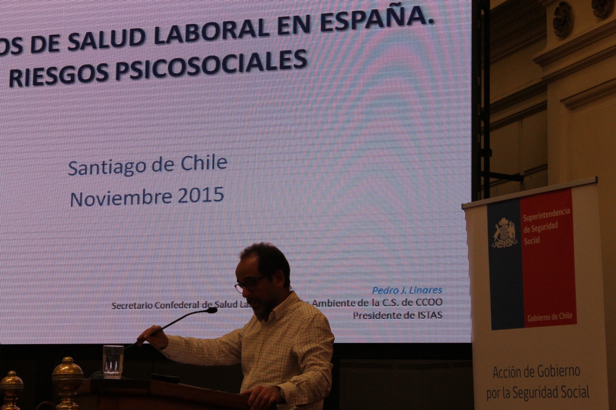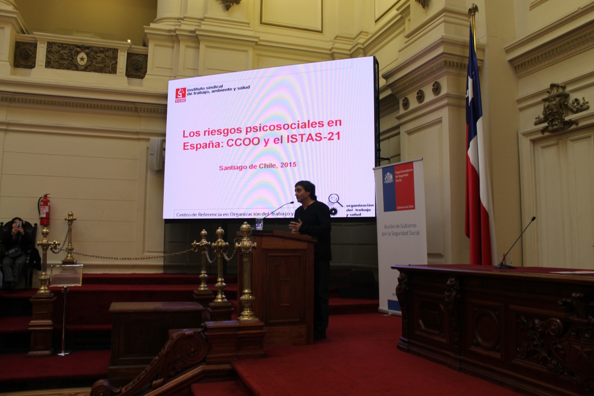 En el ámbito internacional, el seminario tuvo la participación del director del Instituto Sindical de Trabajo, Ambiente y Salud de España (ISTAS), Vicente López, del secretario de Salud Laboral de la Confederación Sindical de Comisiones Obreras de España, Pedro Linares, de la coordinadora de investigaciones en Salud Laboral de la Superintendencia de Riesgos del Trabajo de Argentina, Cecilia Inés Cornelio. En lo nacional expusieron el Jefe de la División de Políticas Públicas y de Promoción del Ministerio de Salud Tito Pizarro y de Juan Manuel Pérez, médico psiquiatra de la Unidad de Medicina en el Trabajo de la Superintendencia de Seguridad Social.