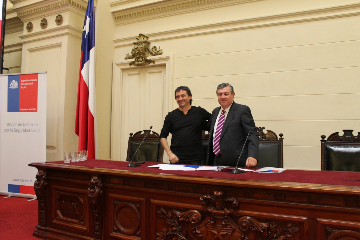 En el marco del seminario, la Superintendencia de Seguridad Social firmó un importante convenio de cooperación con el Instituto Sindical de Trabajo, Ambiente y Salud de España (ISTAS). El convenio fue firmado por el Superintendente, Claudio Reyes y el director gerente del Instituto Sindical de Trabajo, Ambiente y Salud de España, Vicente López, y tiene como propósito profundizar la Evaluación y Prevención de los Riesgos Psicosociales, mediante la experiencia española en la creación y uso del cuestionario CoPsoQ-istas21, fortaleciendo el trabajo en conjunto para desarrollar e implementar una nueva versión del cuestionario SUSESO-ISTAS21 en nuestro país.