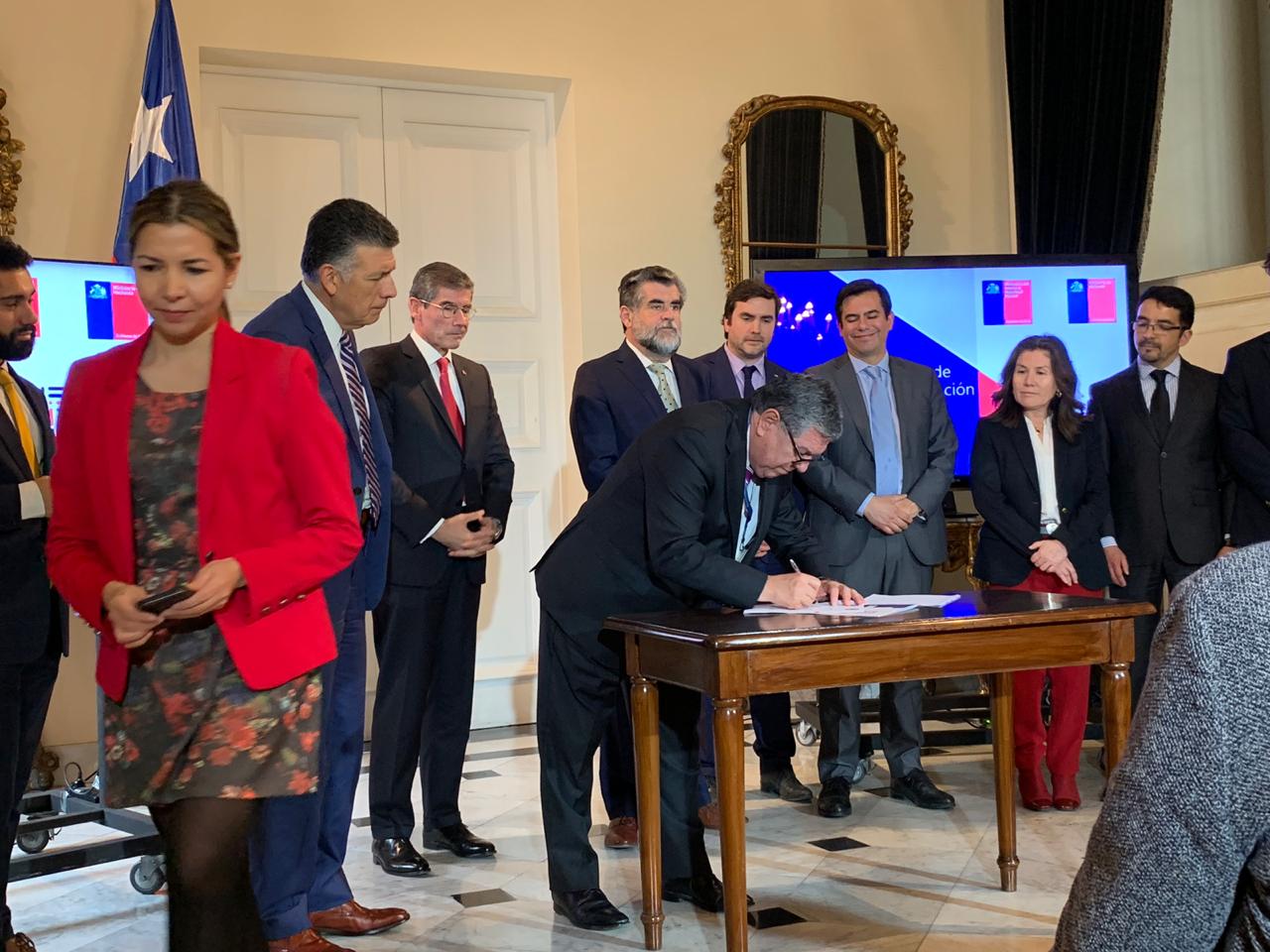 Santiago, 4 de septiembre de 2019. El Superintendente de Seguridad Social, Claudio Reyes Barrientos, asistió ayer al Palacio de La Moneda, para participar de la firma de un convenio de colaboración en materia de ciberseguridad entre los ministerios de Hacienda e Interior y las distintas superintendencias, con el objetivo de entregar un nuevo estándar de transparencia y seguridad para el resguardo de la información.