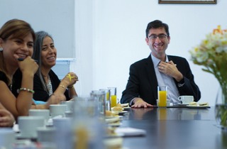 Santiago, 4 de febrero. Una distendida reunión junto a la organización Oncomamás y médicos tratantes se realizó hoy para conmemorar el Día Mundial contra el Cáncer. La reunión, que contó con la participación de la Superintendenta (s) Pamela Gana y el Intendente de Beneficios Sociales, César Rodríguez, fue liderada por el ministro (s) de Trabajo y Previsión Social, Pedro Pizarro, y tuvo como principal objetivo abordar los desafíos de la Ley SANNA.