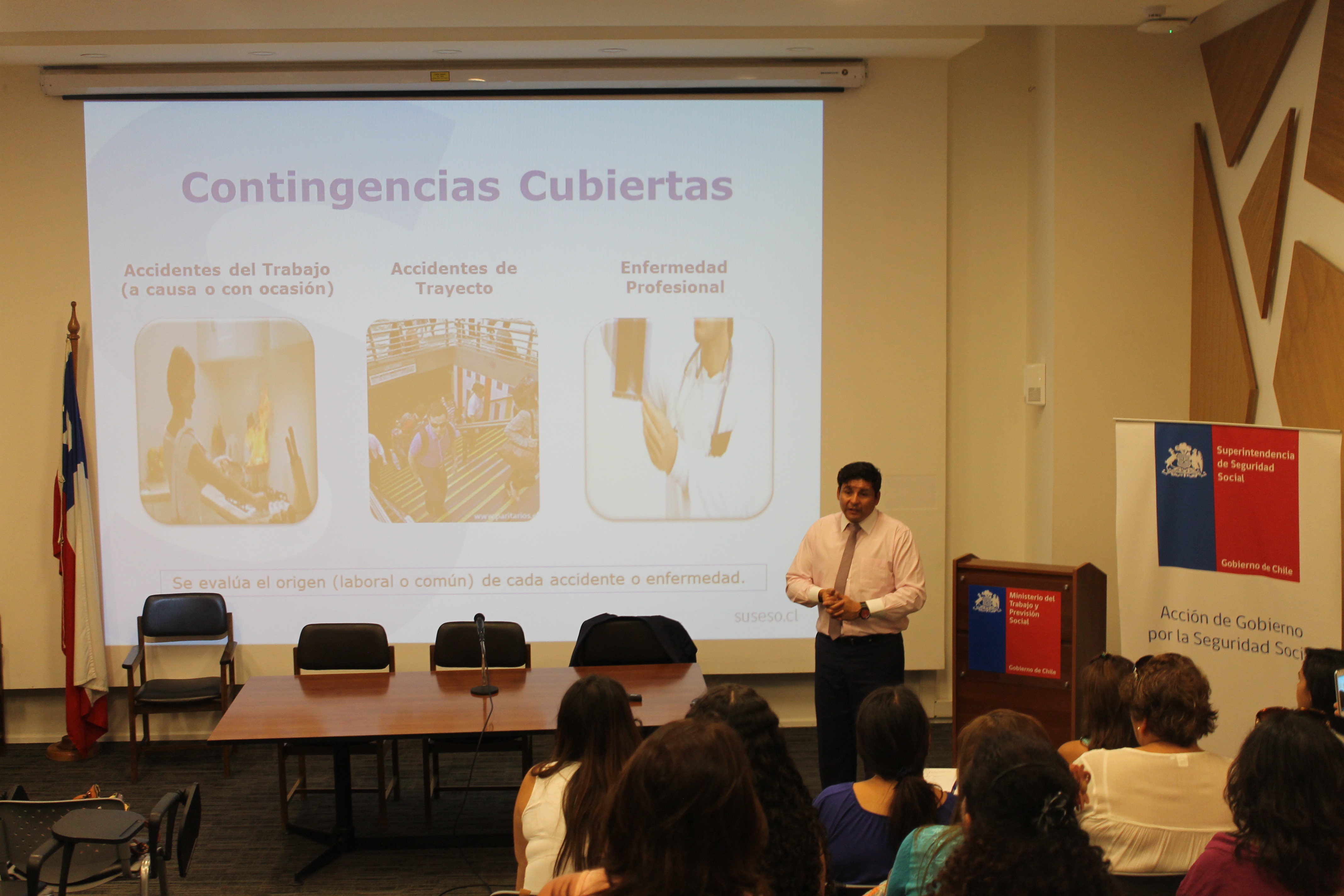 En la jornada se abordó una serie de temas como el Seguro Social de Accidentes del Trabajo y Enfermedades Profesionales a cargo de Alex Salgado, jefe de la Unidad de Fiscalización de la Superintendencia, el Seguro de Salud Común "Licencias Médicas" por Claudia Sandoval, jefa de la Unidad de Gestión de Expedientes, y el Estrés Laboral con el Instrumento ISTAS21 a cargo de Leonardo Polloni de la Unidad de Educación en Seguridad y Salud Laboral.