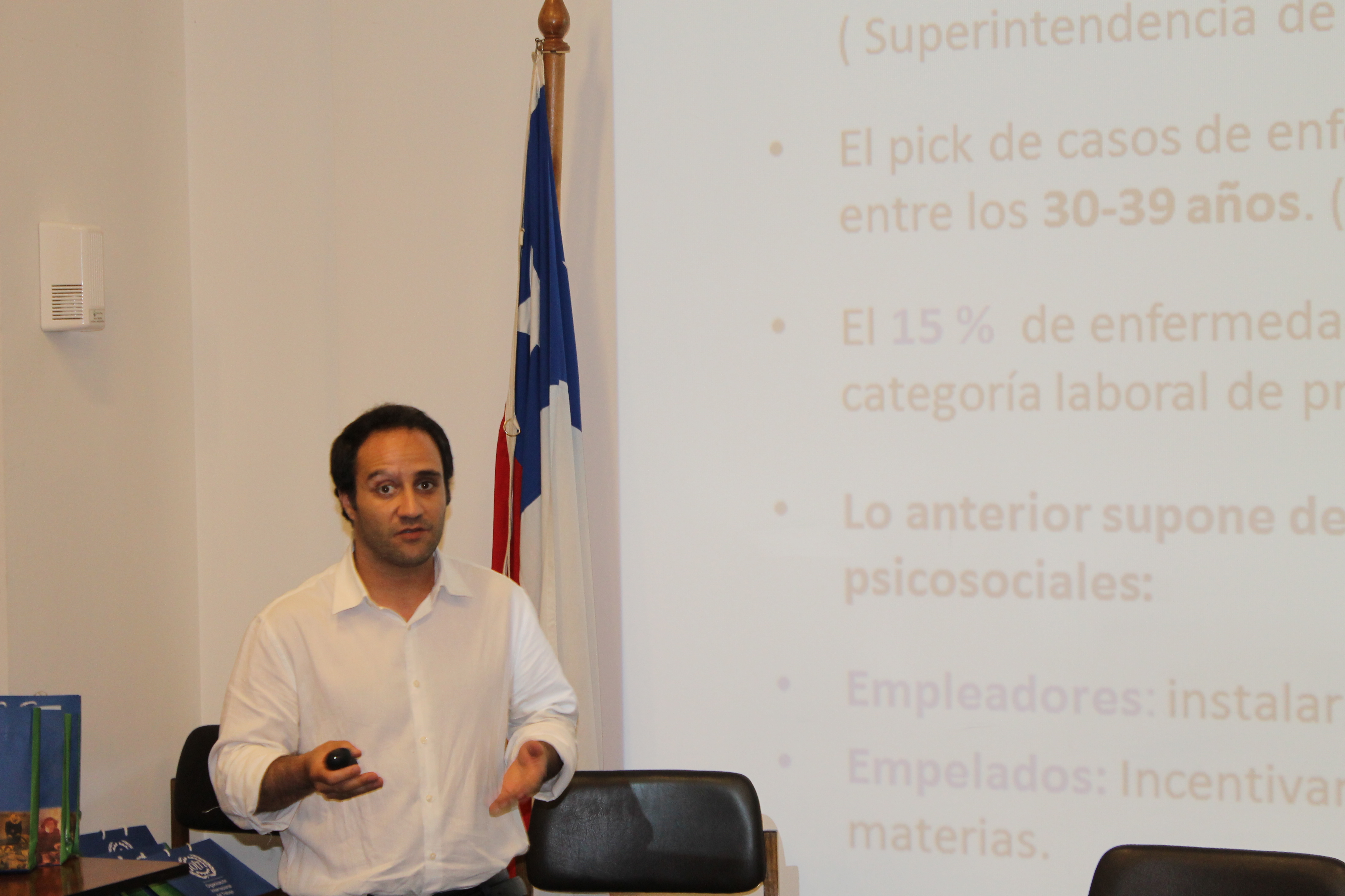 En la ocasión, el Superintendente destacó la importancia de la fiscalización y la divulgación de información sobre las materias que le competen a la institución como la seguridad social. En este sentido, recalcó el énfasis que se ha puesto desde hace unos años en los riesgos psicosociales en el trabajo con el Instrumento ISTAS21 donde las patologías de carácter psiquiátrico ocupan hoy el 21% de las Denuncias Individuales por Enfermedades Profesionales (DIEP).