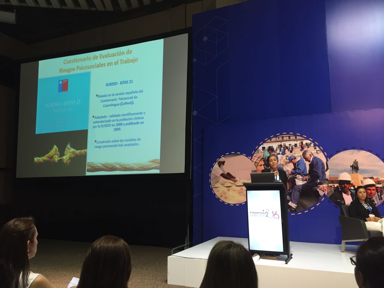 Por su parte, la Intendenta expuso junto a representantes de Colombia, España y Chile en el taller "Buenas prácticas preventivas en enfermedades mentales y del comportamiento de los trabajadores". En la oportunidad, Gana explicó el modelo chileno de evaluación de riesgos psicosociales en el trabajo que se realiza con el Cuestionario SUSESO/ISTAS21.