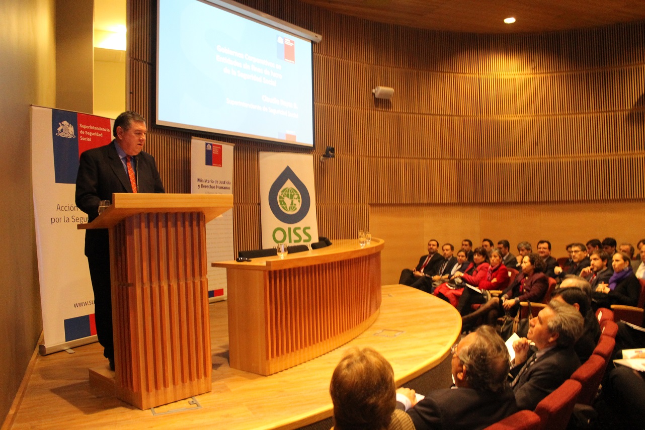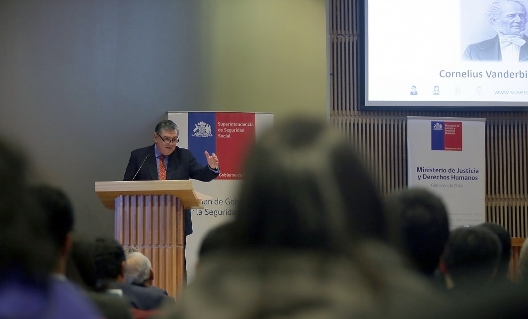 Del ámbito internacional, expusieron Juan Carlos Cortés, director Regional Andino de la organización Iberoamericana de Seguridad Social (OISS), quien relato sobre la experiencia internacional en los gobiernos corporativos de la seguridad social, con el caso de Colombia y, Carlos Tortuero, Consejero de Empleo y Seguridad Social de la Embajada de España en Chile, sobre el caso de España.