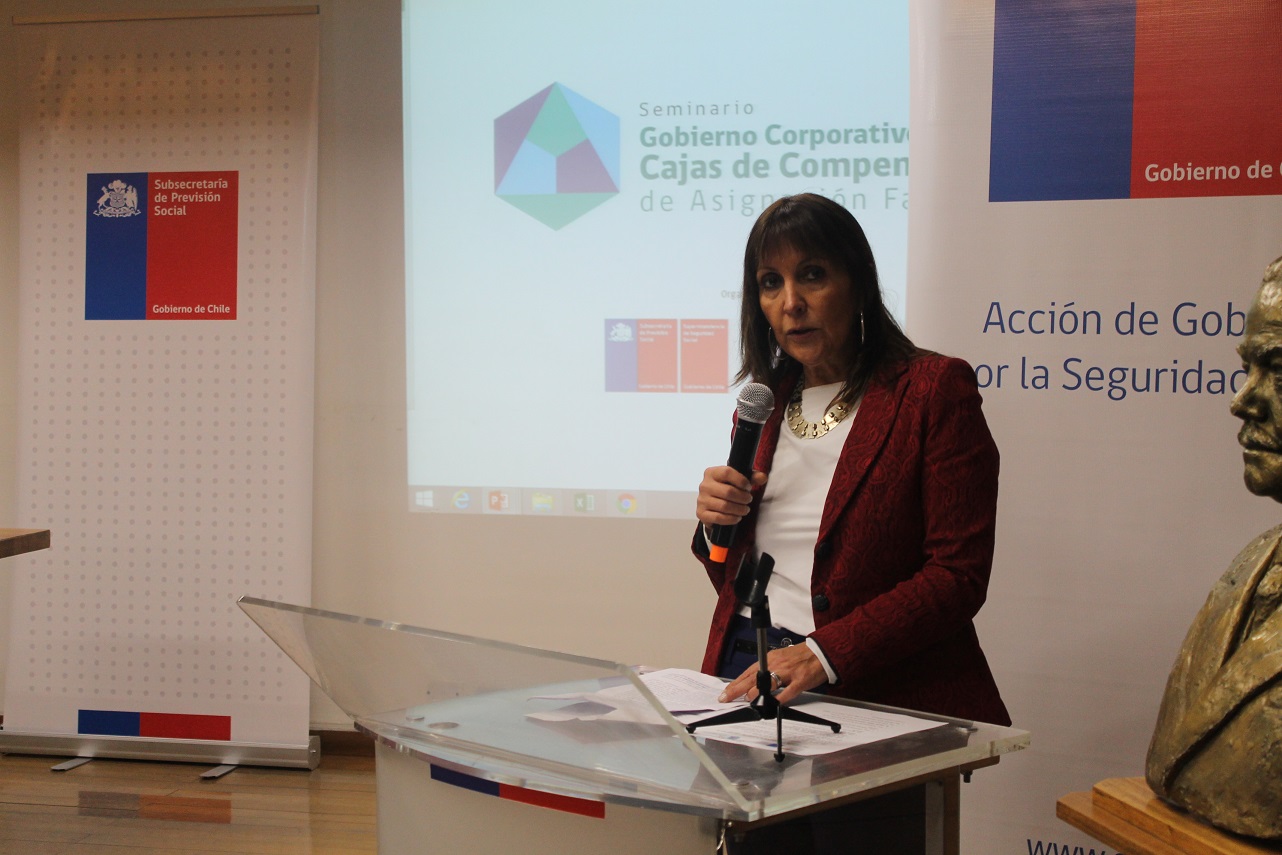 El la ocasión, la Subsecretaria (s) de Previsión Social, Marta de la Fuente, destacó el rol de los gobiernos corporativos en entidades sin fines de lucro, "Hablar de los gobiernos corporativos de las cajas de compensación significa hablar de corporaciones privadas, que no persiguen fines de lucro, pero que tienen una función social preponderante, que deben gestionar con transparencia y eficiencia un fondo social".