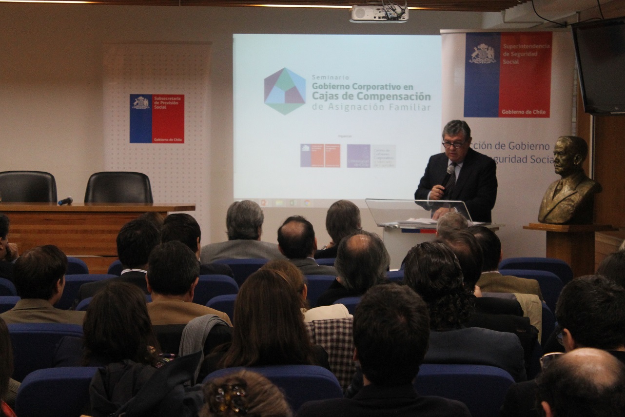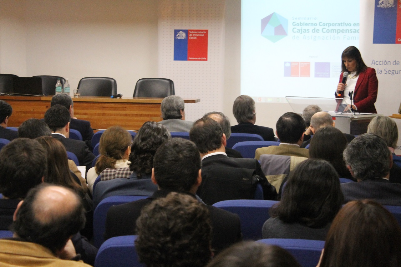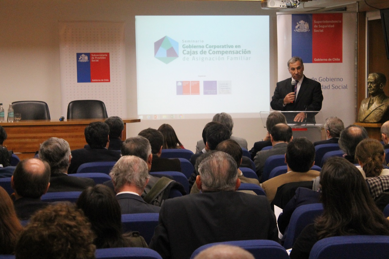 Con la presencia de la subsecretaria (s) de Previsión Social, Marta de la Fuente y del Superintendente de Seguridad Social, Claudio Reyes se desarrolló seminario de "Gobierno Corporativo en Cajas de Compensación de Asignación Familiar", que congregó a cerca de 90 directores, representantes sindicales, altos ejecutivos de las CCAF, del sistema bancario y del mercado de bonos, además de fiscalizadores y profesionales de la Superintendencia de Seguridad Social.
