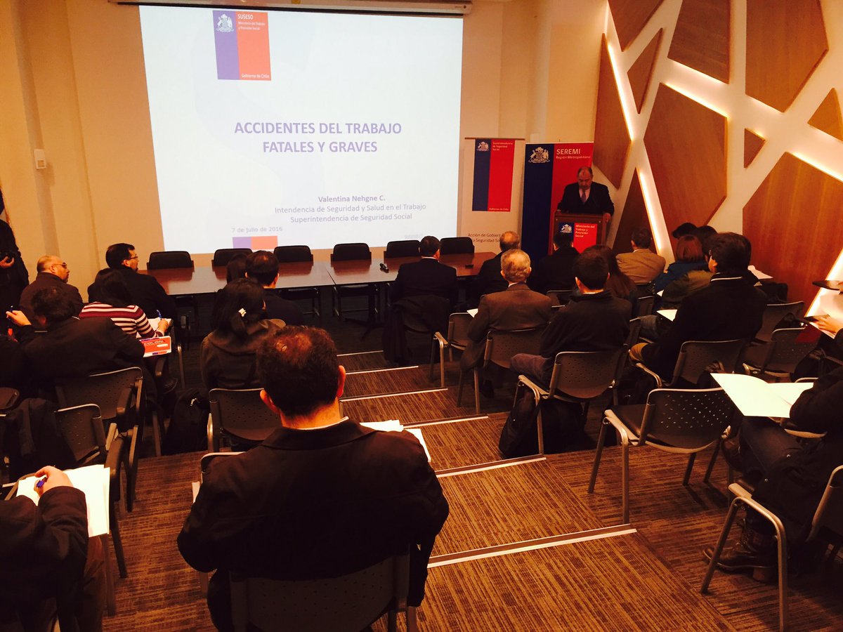En el marco del programa de capacitación en seguridad y salud laboral que está desarrollando la Superintendencia de Seguridad Social, se efectuó la jornada de capacitación a funcionarios del área de fiscalización de la seremia de Salud de la Región Metropolitana y de la Dirección del Trabajo Metropolitana Oriente y Poniente, en materias de normativa asociada a la notificación e investigación de los accidentes laborales fatales y graves.