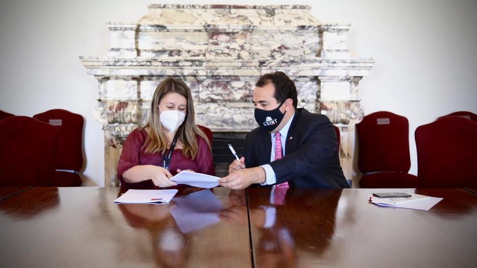 Santiago, 4 de marzo de 2021. En una reunión encabezada por el Subsecretario del Interior, Juan Francisco Galli en La Moneda, junto con la Superintendenta (s) de Seguridad Social, Patricia Soto Altamirano, se llevó a cabo la firma de la Normativa de Ciberseguridad para la Gestión de la Seguridad de la Información que será aplicada a las mutuales, entidades fiscalizadas por la Intendencia de Seguridad y Salud en el Trabajo.