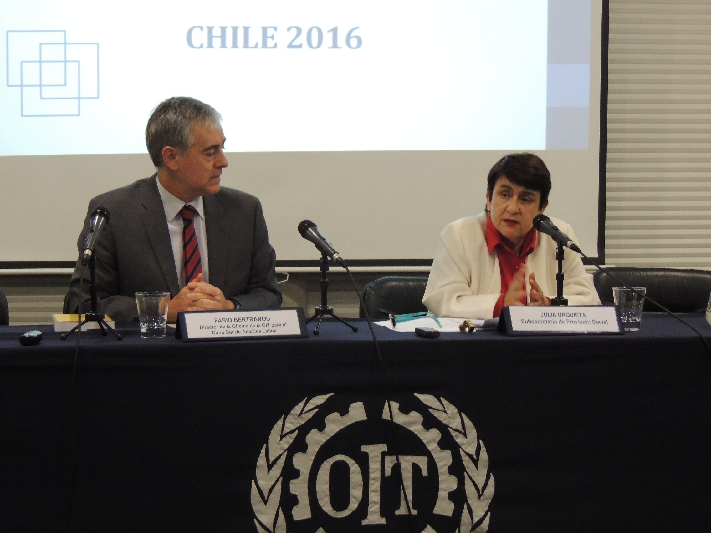 En encuentro desarrollado en las oficinas del organismo internacional, convocó a diversas autoridades, representantes de trabajadores y de instituciones nacionales e internacionales ligadas al trabajo, encabezados por la subsecretaria de Previsión Social, Julia Urquieta, el Director de la OIT para el Cono Sur, Fabio Bartranou, el superintendente de Seguridad Social, Claudio Reyes, el director del Instituto de Seguridad Laboral, Jacob Sandoval, la intendenta de Seguridad y Salud en el Trabajo de la SUSESO, Pamela Gana, el presidente de la Asociación de Mutualidades, Ernesto Evans, entre otros.