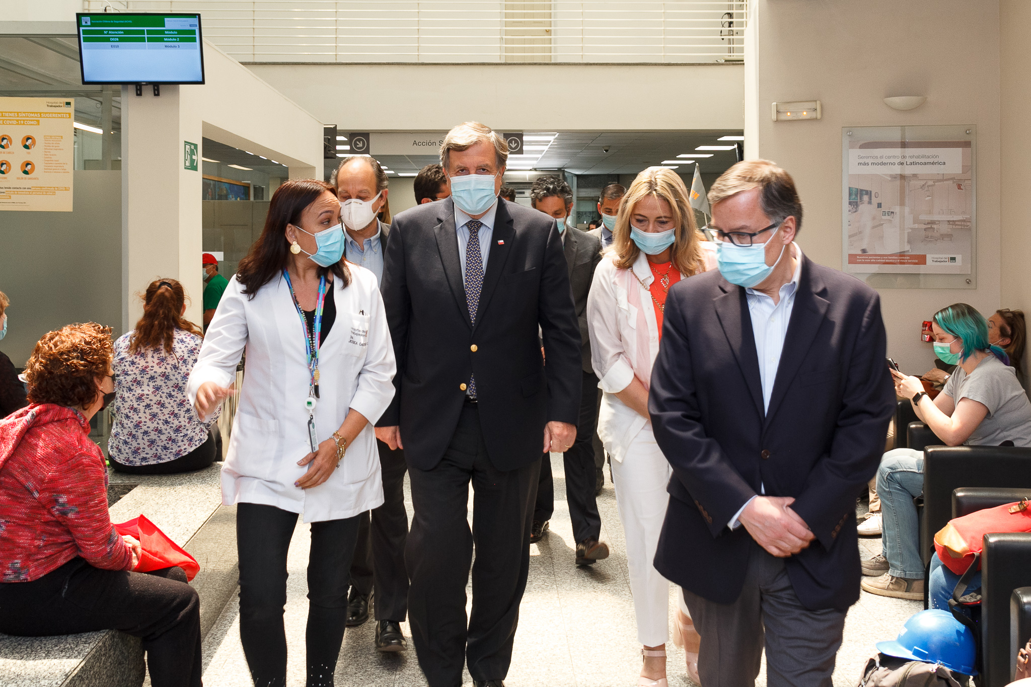 Santiago, viernes 5 de noviembre. La Superintendenta de Seguridad Social, María Soledad Ramírez junto al ministro del Trabajo y Previsión Social, Patricio Melero, y el Subsecretario de Previsión Social, Pedro Pizarro, recorrieron las nuevas instalaciones del Hospital del Trabajador de la Asociación Chilena de Seguridad (ACHS) en la comuna de Providencia.