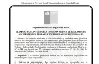 LLAMADO PARA INTEGRAR LA COMISIÓN MÉDICA DE RECLAMOS DE ACCIDENTES DEL TRABAJO Y ENFERMEDADES PROFESIONALES