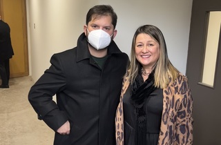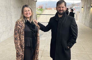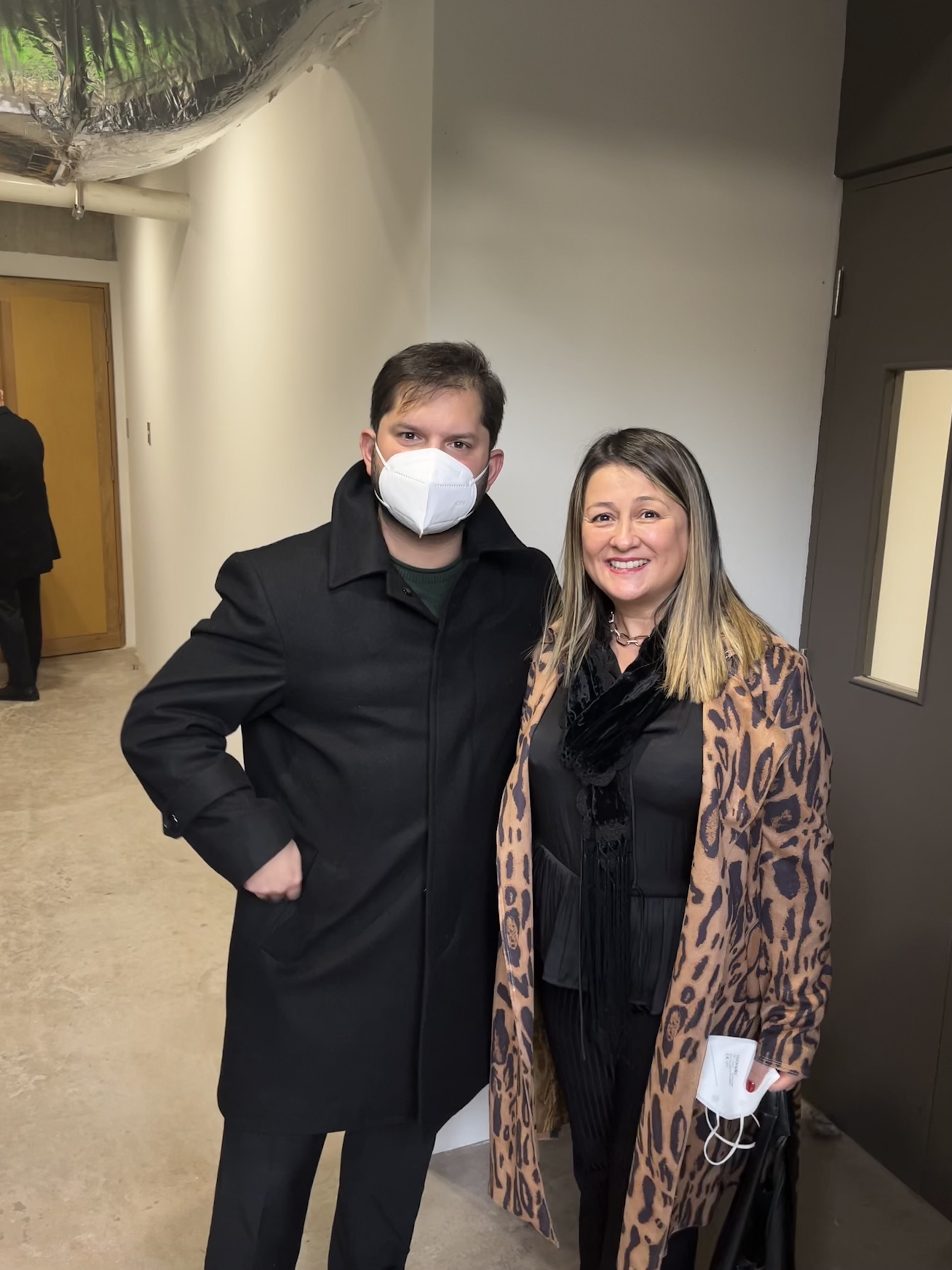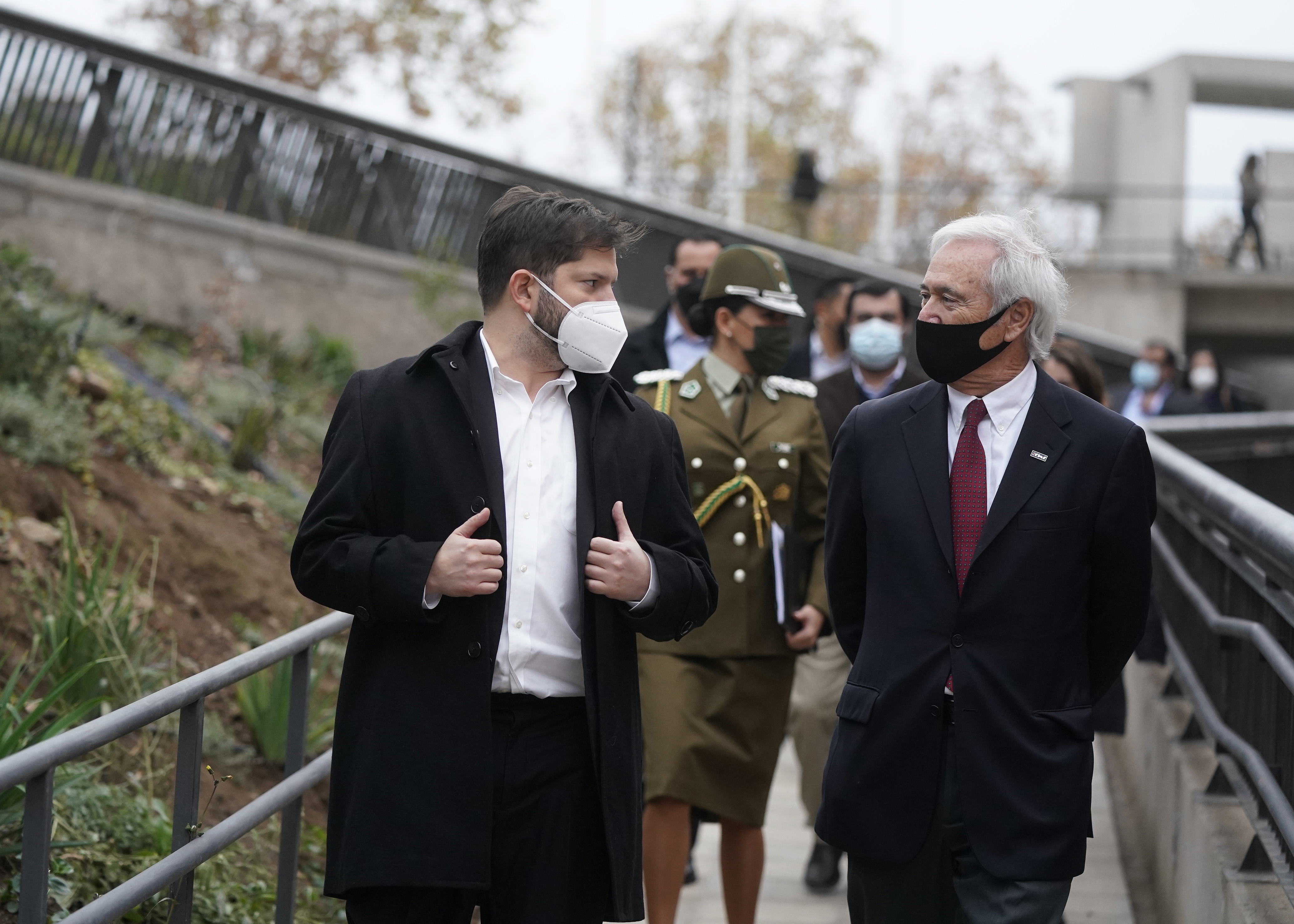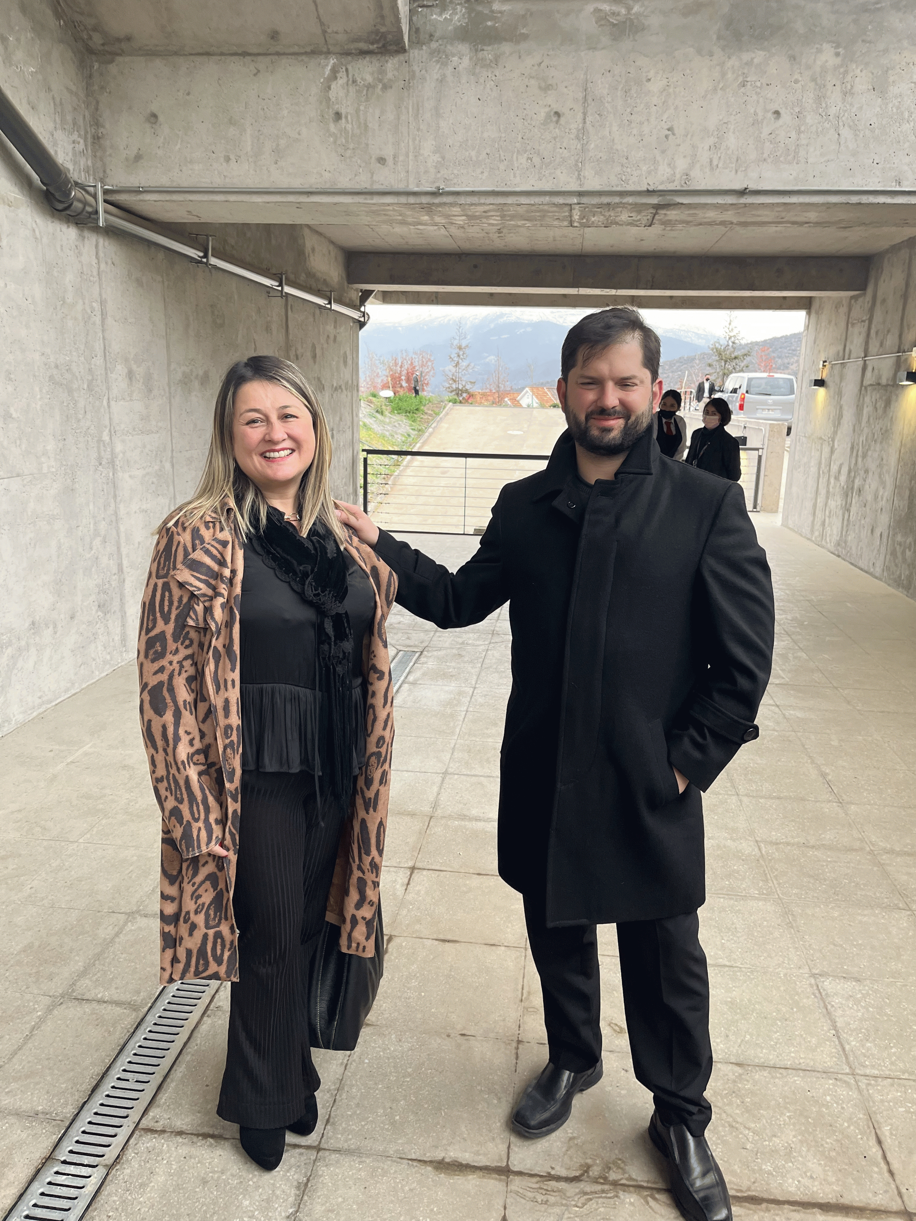 Una vez finalizada la actividad, Patricia Soto Altamirano, Superintendenta (s) de Seguridad Social compartió impresiones con el Presidente de la República Gabriel Boric.