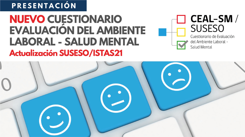 SUSESO Presenta nuevo Cuestionario de Evaluación de Ambiente Laboral - Salud Mental (Actualización SUSESO/ISTAS21), webinar que se llevará a cabo el viernes 11 de noviembre a las 9:00 horas.