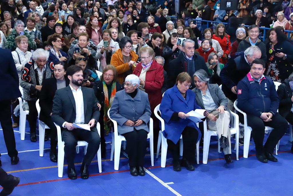 Hasta la comuna de Macul llegaron más 800 adultos mayores para escuchar los alcances de la Reforma de Pensiones que impulsa el Gobierno. El acto fue encabezado por el Presidente de la República, Gabriel Boric, la Ministra del Trabajo y Previsión Social, Jeanette Jara y la ex Presidenta, Michelle Bachelet.