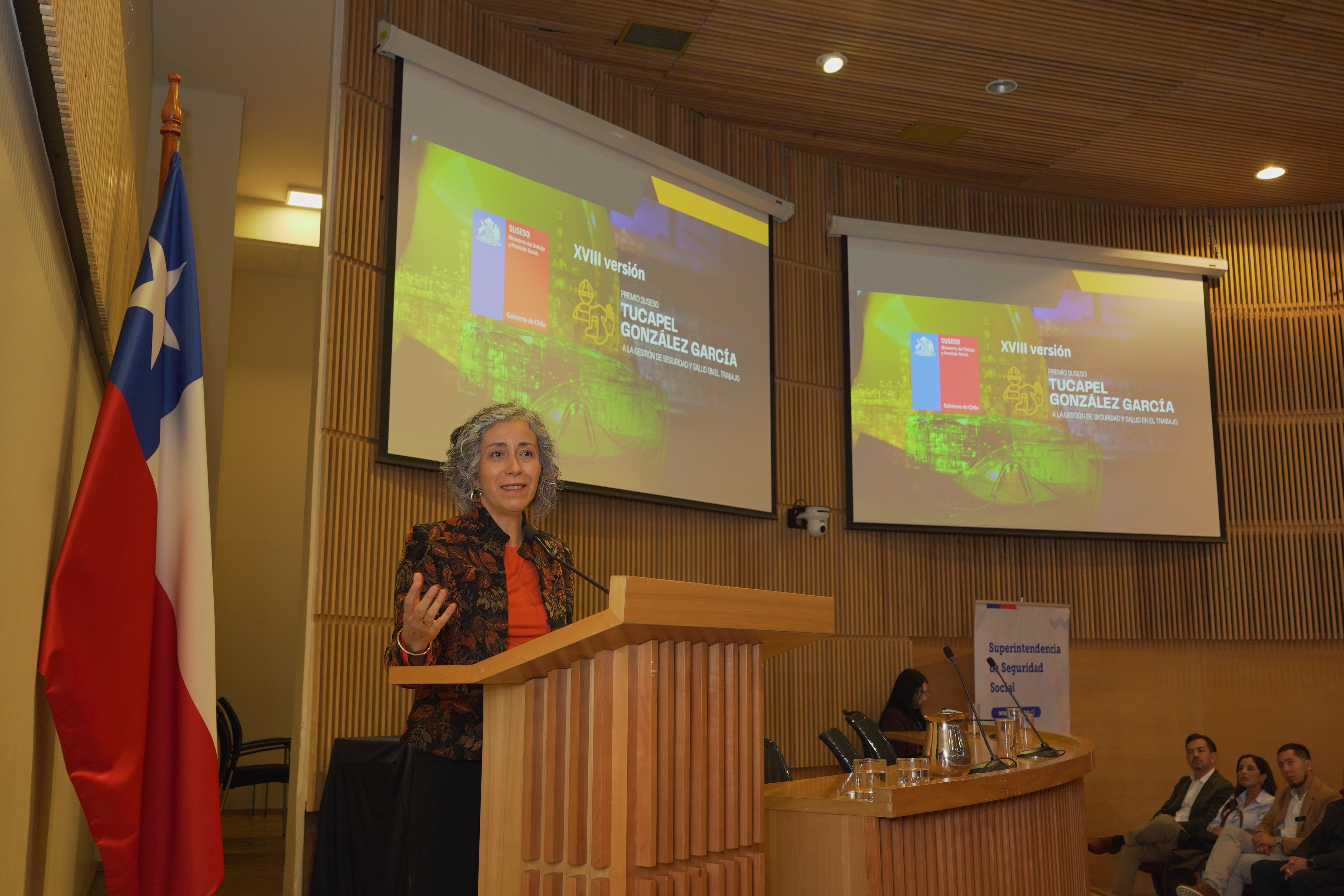 La ceremonia también contó con la intervención de Elena Contreras, jefa del Departamento de Prevención y Vigilancia de la Intendencia de Seguridad y Salud en el Trabajo, quien destacó la importancia de implementar sistemas de gestión de seguridad en empresas de todos los tamaños, recalcando su impacto directo en la calidad de vida laboral.