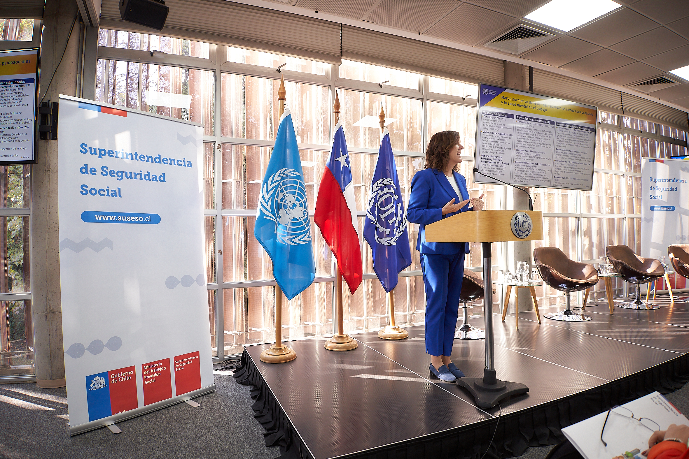 En la ocasión, Carmen Bueno, especialista en seguridad y salud en el trabajo de la OIT, presentó los avances mundiales en la gestión de los riesgos psicosociales en el trabajo y una guía de acciones para abordarlos.