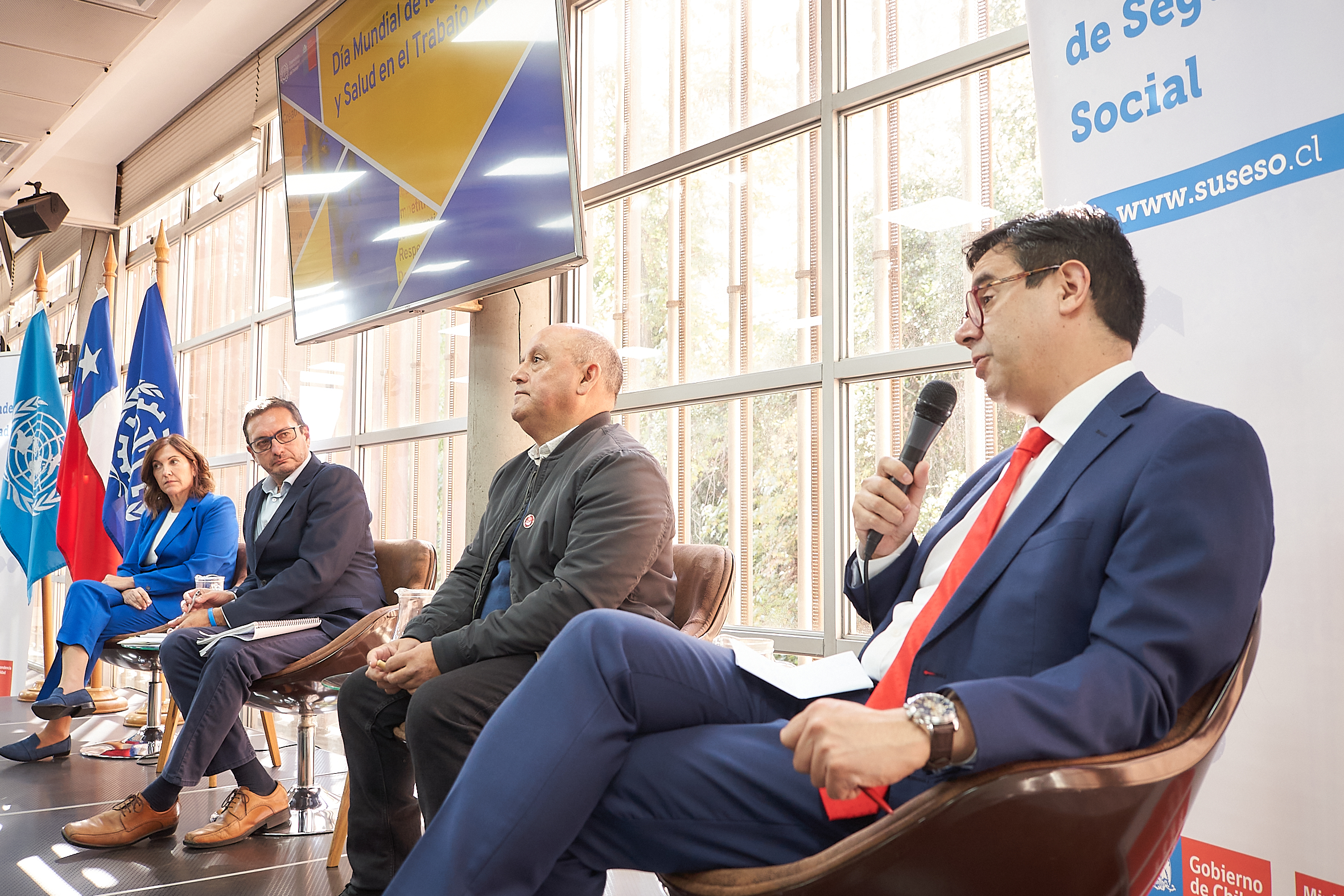 El evento también contó con un panel de conversación tripartito, en el que participaron representantes de trabajadores, empleadores y autoridades. Entre ellos, el presidente de la Central Unitaria de Trabajadores (CUT), José Manuel Díaz; el gerente Legal de la Cámara Chilena de la Construcción en representación de la CPC, Gonzalo Bustos y el intendente de Seguridad y Salud en el Trabajo, José Francisco Castro.