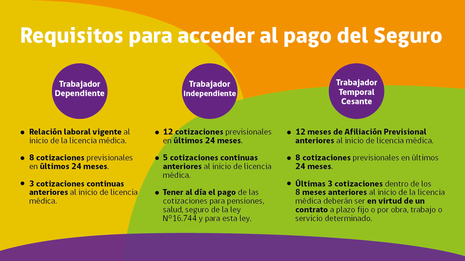- El trabajador o trabajadora debe además cumplir con las condiciones de acceso al seguro según la contingencia de que se trate y con determinados requisitos previsionales.