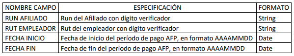 Descripción del archivo: La Administradora de Fondos de Pensiones (AFP) deberá enviar en base al mecanismo de transmisión descrito en el texto de este oficio, un archivo plano con formato