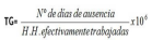 Donde, Nº de días de ausencia= días perdidos por accidentes + días cargo. H.H. efectivamente trabajadas= HH contrato + HH extraordinarias - HH no trabajadas
