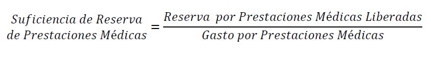 Este indicador mide la suficiencia en la estimación de la reserva por gastos de prestaciones médicas constituida por la mutualidad respecto al gasto médico efectivo, en un período determinado de 12 meses.