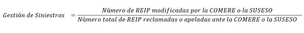 Número de REIP modificadas por la COMERE o la SUSESO: Corresponde al número de resoluciones de incapacidad permanente (REIP) emitidas por las mutualidades, que han sido modificadas por la COMERE o la SUSESO, durante un año calendario. Se deben considerar sólo los dictámenes modificatorios de la COMERE o la SUSESO, que se encuentren ejecutoriados. Si una misma REIP ha sido revisada en ambas instancias (COMERE y SUSESO), se debe computar como un solo caso.