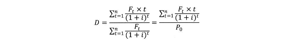 Por otra parte, la duración modificada (D*), cuya fórmula es similar a la anterior, pero dividida por (1+𝑖), es una medida más directa de la reacción porcentual del precio (valor presente) al cambio en la tasa de interés.