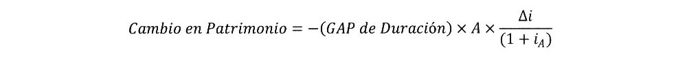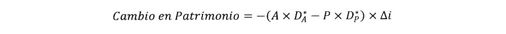 El impacto final depende tanto del monto (valor presente) de activos y pasivos, como de la duración de ellos. De este modo, se puede observar que el cambio neto del patrimonio es igual a: